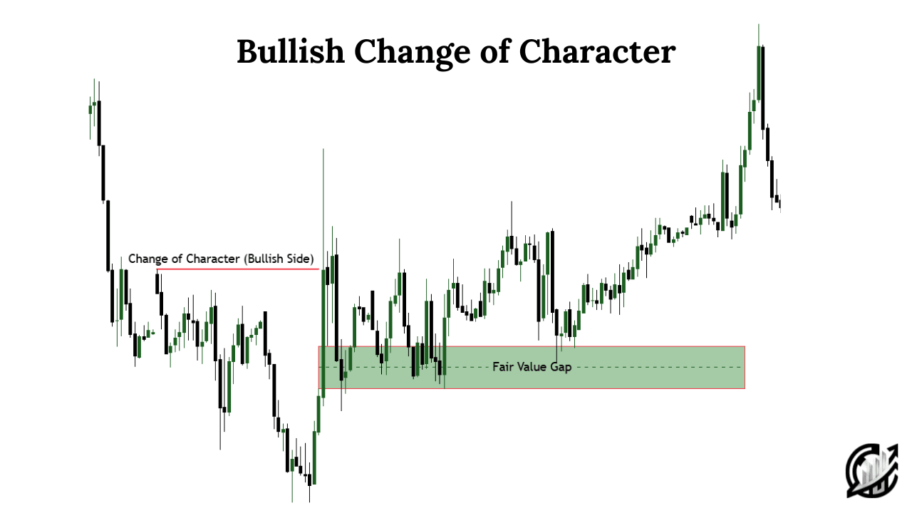A bullish Change of Character is a critical concept in technical analysis, indicating a trend reversal from bearish to bullish. By breaking the structure of Lower Highs and forming a Higher High, the market signals that the downward momentum is weakening, and buyers are gaining control. For traders, recognizing this shift can provide lucrative opportunities to enter long positions in the early stages of a new bullish trend.